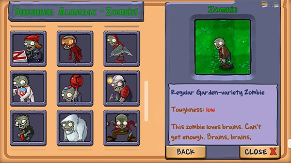 4、这里是僵尸的大图鉴,每一个僵尸都有其独特的风格与特色。