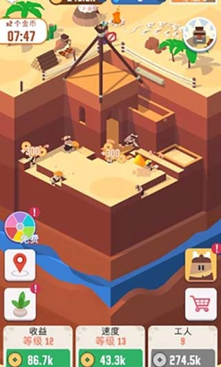 2、只需轻松点击指尖,通过提升工人们的挖矿效率来积累更多财富,同时还能自由建造各类建筑。