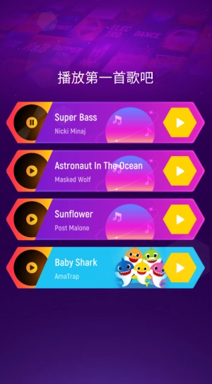 2、那我们接下来就播放第一首歌吧,你可以挑选一首自己感兴趣的歌曲来玩。