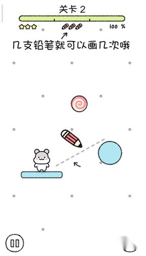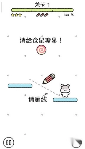 4、这里需要画线让仓鼠吃到糖果;