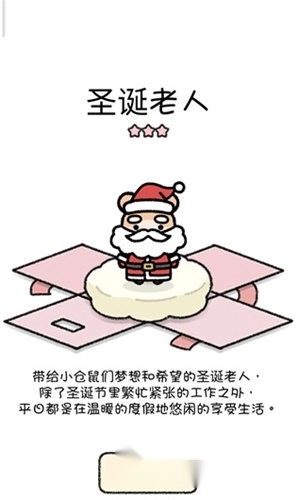 7、同时还有机会获得不同的皮肤,例如圣诞老人皮肤:它能为小仓鼠们带来梦想与希望,除了在圣诞节期间投身于繁忙又紧张的工作外,平日里都会在温暖的度假地悠然地享受生活。