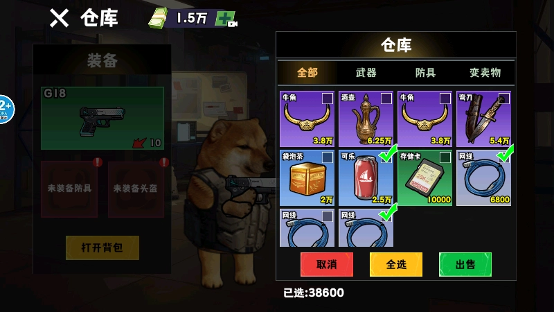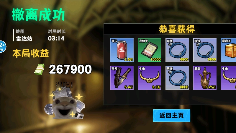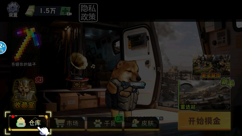 7、回到主页后,点击左下角的【仓库】按钮,就能进入背包把我们的战利品兑换成收益
