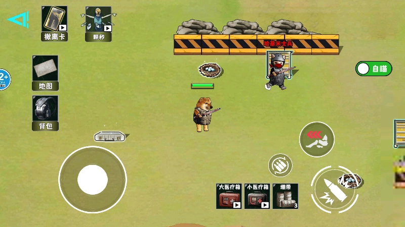 可以通过虚拟摇杆或触屏的方式操控修勾移动,点击对应的按钮就能完成开枪、切换武器、使用道具等操作。