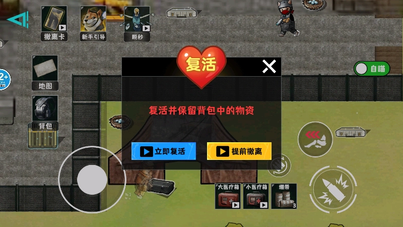 4、即便受到伤害不幸死亡,我们只需点击【立即复活】按钮,不用观看广告就能继续游戏进程。