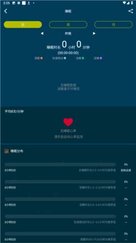 2、每日记录睡眠质量情况,涵盖深睡、浅睡、睡眠时长、清醒时长等方面。