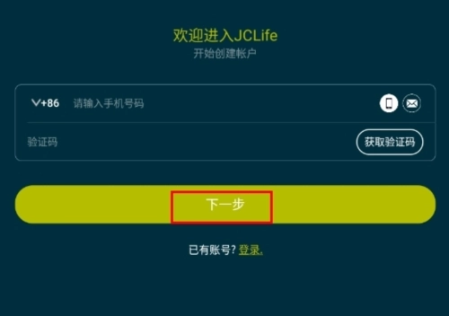 2、在登录界面输入手机号码与验证码后,点击【下一步】按钮;