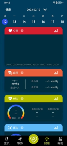 3、在健康页面能够查看你的心率、血压、HRV、压力等各项健康指标。