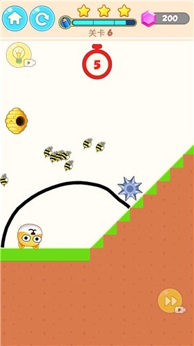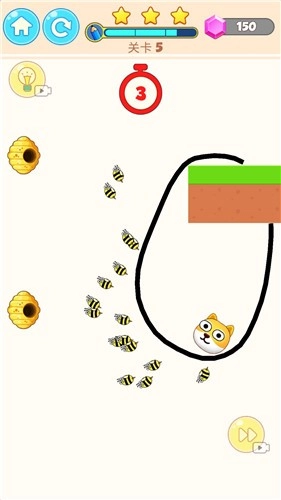 2、每个关卡里都设有一个蜂窝,你得在限定时间内通过划线来阻挡蜜蜂的追击。
