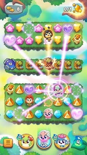 在这段旅程中,你会收集到名为“蓓蕾”的可爱宠物,和精灵们嬉戏玩闹,与黑暗小队展开对抗,还能匹配出甜蜜的珠宝。