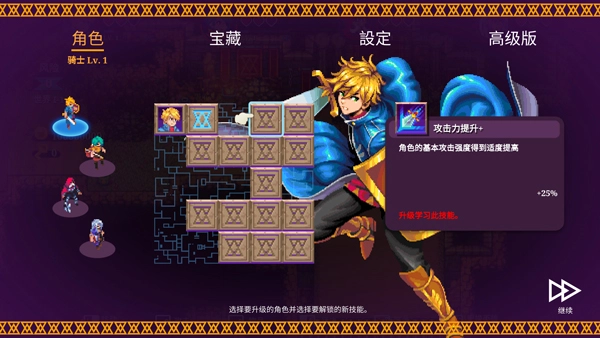 2、游戏整体采用经典的16位街机风格进行呈现,Rogue-lite玩法给予你无尽的随机冒险体验。