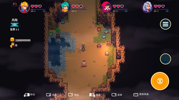 2、你可以和朋友们并肩战斗,或者自己控制四个英雄,每次都能经历不同的战斗。