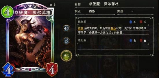 当前版本吸血鬼卡组的绝对核心,身材很棒,唯一比较烦的就是水巫女。水巫女进化后67刚好可以解掉进化的怠堕魔自己还能活下来。当前版本T1级别的小仓唯斩杀爆发多在T7魔将军回合,龙的斩杀也多半要T7以后。因此四费下怠惰到10血是很安全的。