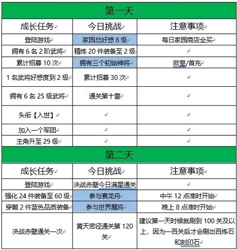 6:前七天先尽量均衡发展,七天后再走极限,方便完成任务(武将进阶及装备品质)