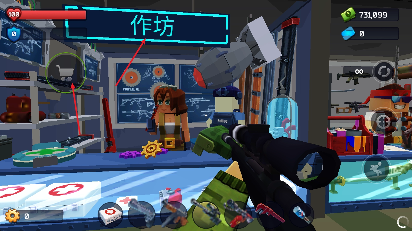 进入游戏后,我们找到作坊,靠近它就能点击左侧的商店按钮进入。