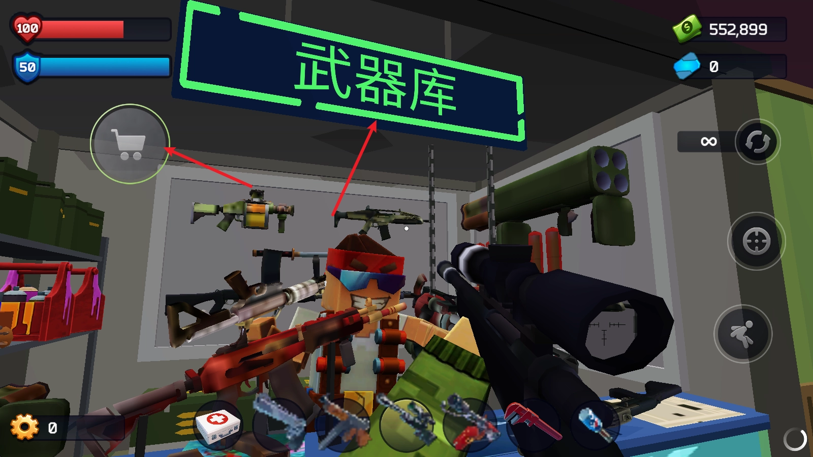 找到武器库,点击进入商店。