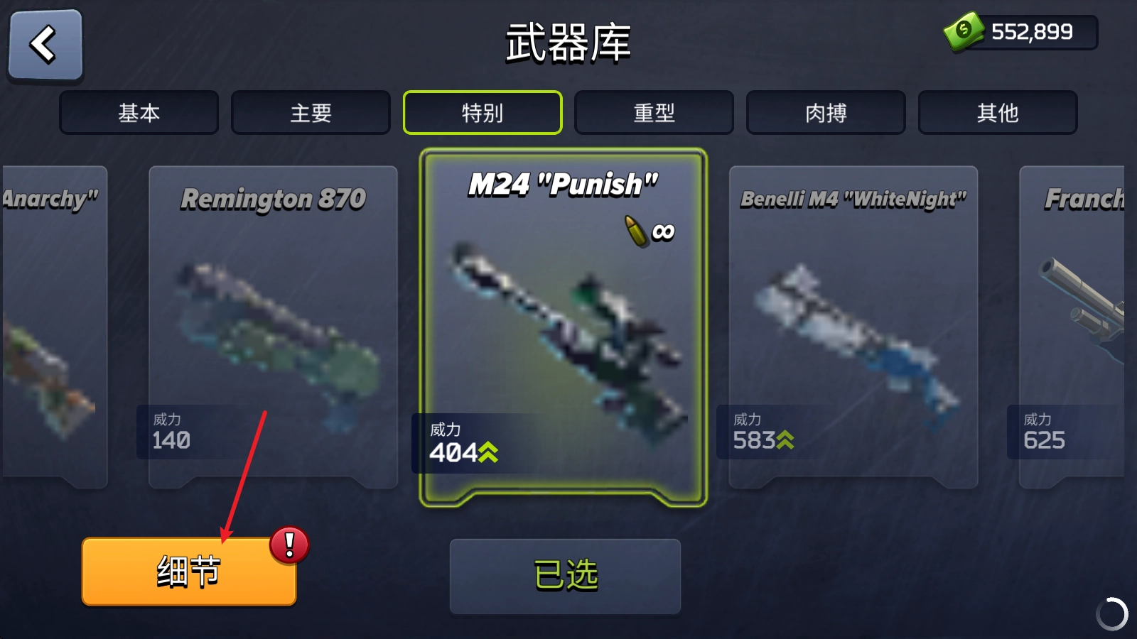 接着找到你已拥有的武器,点击左下角的细节。
