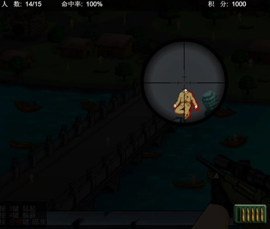 开启瞄准器,狙击小日本,狙击手尽量打鬼子狗头,一枪毙敌。