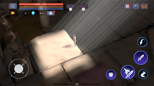 正式开始后,左侧负责控制角色移动,右侧则设有攻击、格挡和翻滚按钮。