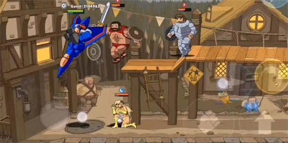 选好角色之后就会正式开始游戏,左边的操作键用来控制角色移动,右边则分布着普通攻击、跳跃以及技能相关的按键。