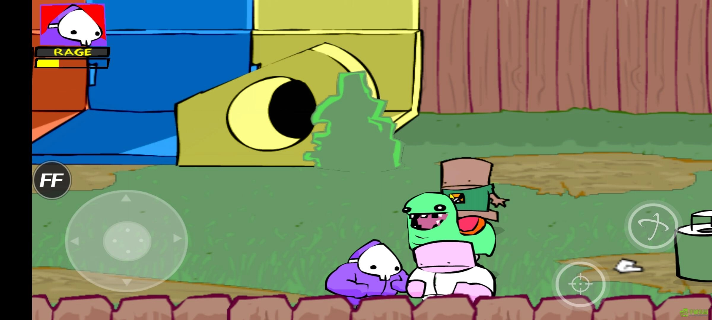 又有不少小朋友过来啦!里面有个穿黑色西装、系着蝴蝶领结的小家伙(血量比普通小朋友多一些),会举着一把玩具枪朝你射击(子弹看着像马桶搋子?),被打中可是会掉血的!对了,停在右上方的那台除草机,还能当作炸药来用呢!