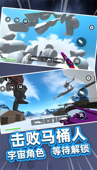 背景的交融:奇特的荒野场景与厕所怪物场景相互融合,武器库里陈列着各类怪异的道具、图形以及形形色色的武器,供您挑选。