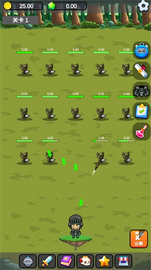 每隔一段时间,我们的剑就会自动出鞘攻击敌人,只要击败敌人就能获得金币。