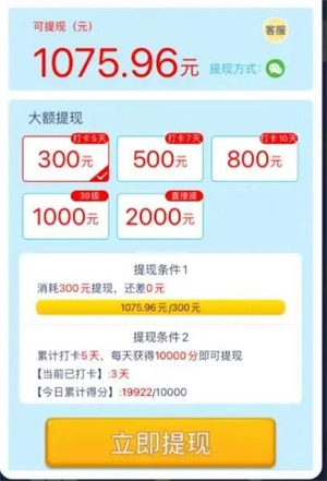 300元是无法提现的。玩家余额未满300元时,点击大额提现的300元选项没有附加要求;但一旦余额超过300元再点击该选项,就会弹出两个额外提现条件,其中一个条件难度极高、几乎无法完成,因此300元实际上无法成功提现。