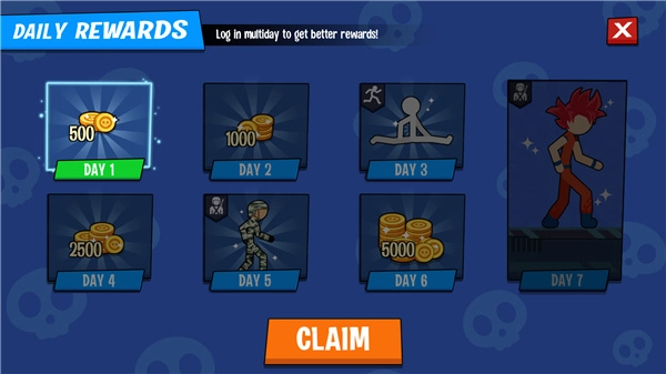 8、每天按时登录签到就能领取大量金币,连续签到满七天还能获得一款新皮肤;