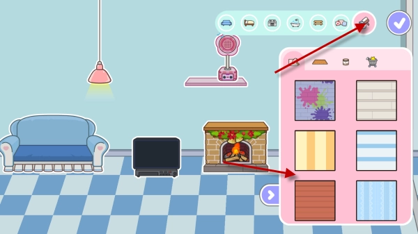 5、点击右上角的粉刷界面,在这里可以为墙壁和地面更换成自己喜欢的类型。