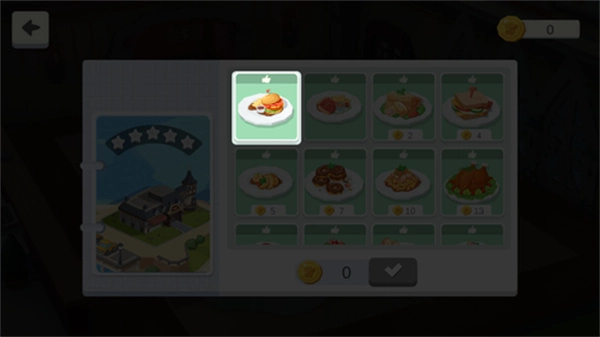 3、从一家小小的餐厅开始,通过完成顾客的订单获取金币与声望,一步步拓展餐厅的规模,升级厨房的各类设备。