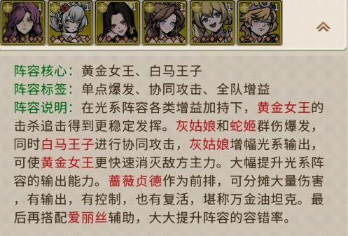 2、海量童话角色可供你挑选培养,丰富多样的阵容组合任你自由搭配使用。