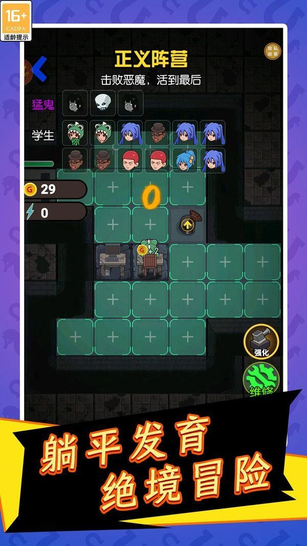 《乐园幻想录》是一款围绕校园躺平冒险主题设计的策略战争游戏,热血的猛鬼对抗随时可能爆发。玩家只需快速布置不同的英雄阵容,持续提升英雄技能,就能开启这场畅快刺激的生存大战。游戏采用经典回合制对战模式,一局挑战大约五分钟就能结束,让玩家告别枯燥体验。