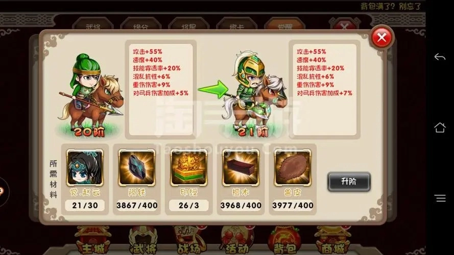 将星系统是用来提升武将属性的,它设有5个格子。武将的星级越高,升级成功的概率就越低,不过升级消耗的经验能够回收,不会带来任何损失。