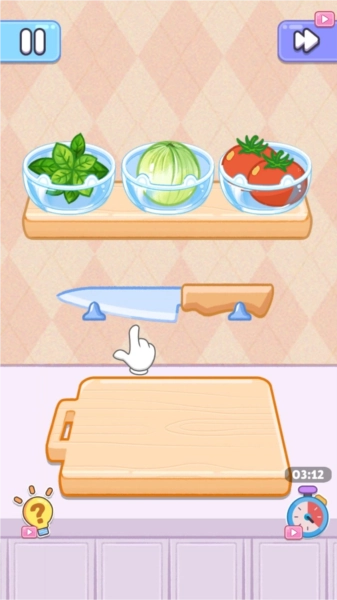 1、操作手感十分流畅,切菜和翻炒时的拟真反馈让人越玩越上瘾,不过后期关卡的难度会突然加大,需要反复练习才能顺利通关。