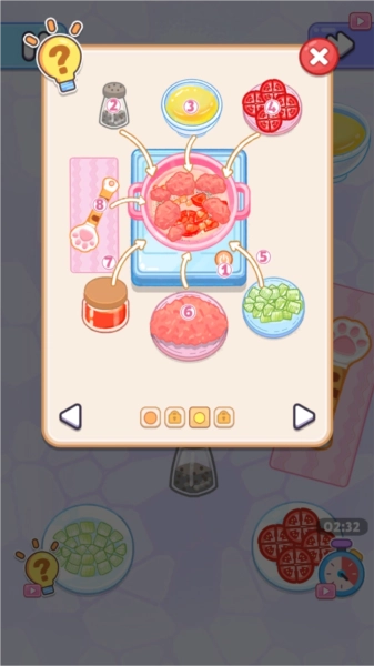 3、唯美舒适的氛围:精美的手绘视觉呈现与灵动鲜活的动画效果,使每一道菜品都洋溢着趣味与生机。