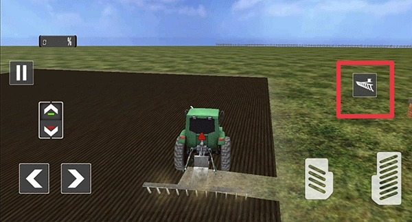 3、完成工具安装后,驾驶车辆前往农场;抵达农场后,点击界面右上角的犁形图标,即可完成耕田操作。