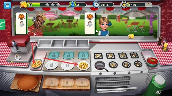 在游戏中,玩家将扮演一辆餐车的老板。你需要根据客人的要求准备相应的菜肴供他们使用。这个游戏的操作很简单。采用传统的触摸屏控制方式。