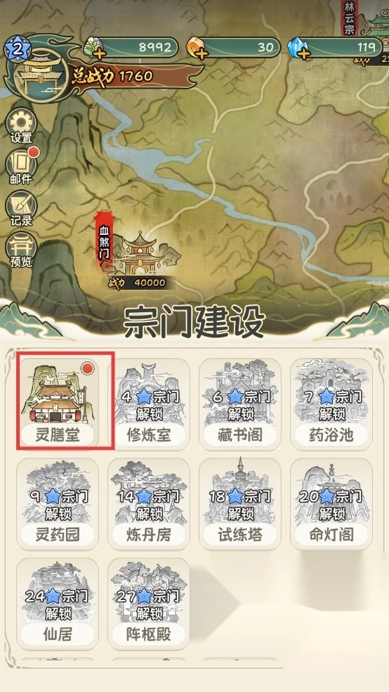 2、在宗门建设中优先升级【灵膳堂】,提升宗门建筑等级以解锁更多功能。