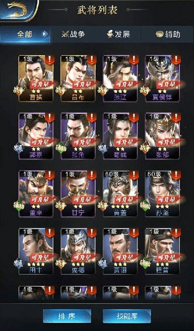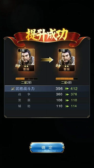武将提升:分为等级提升和星级提升;