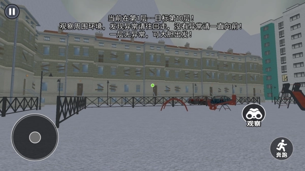 3、当处于有多栋建筑的场景时,利用“观察”功能仔细查看建筑的门窗、墙面等区域,在确认没有异常情况后,再顺着视野开阔的路线继续向前探索。