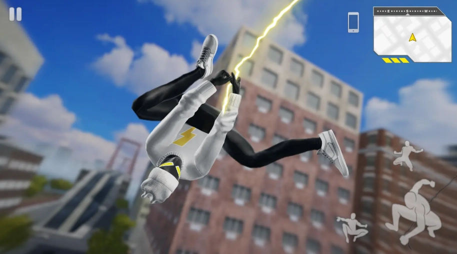 主角拥有蜘蛛侠的能力,使用绳索在城市中穿越。