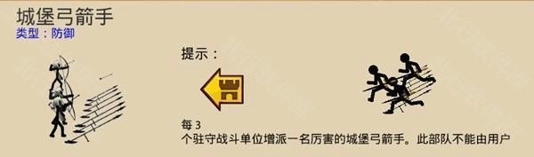这个战术的唯一短板就在于前期能否守住阵地,因此要尽可能确保有四个满级的城堡弓箭手。只要弓箭手的数量足够,就算是斯巴达也抵挡不住。