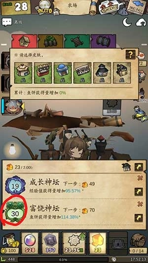 优先升级第二十四关解锁的【丰饶神坛】,其他类型的神坛(成长型、共鸣型)暂时保持一级,等后期再集中资源进行突破。