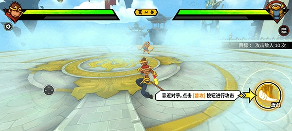 靠近对手,点击普攻按钮进行攻击;