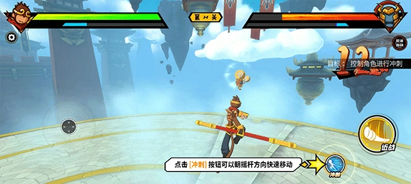 点击冲刺按钮可以可以朝摇杆方向快速移动;