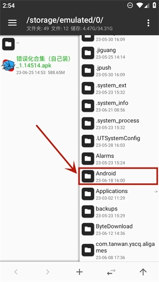 1、打开文件管理应用,在其中搜索名为“android”的文件夹。