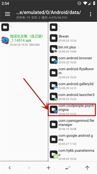 7、点击后继续点击data,找到最初新建的com.coolpeople.psychengine文件夹,然后点击files文件夹。