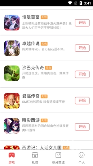 3、在礼包页面里,你能够了解各类游戏,随时领取礼包,也可以试玩各类游戏。
