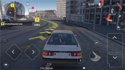 2、初始阶段会提供新手教程供玩家学习驾驶,只要通过指定地点就能完成该教程;