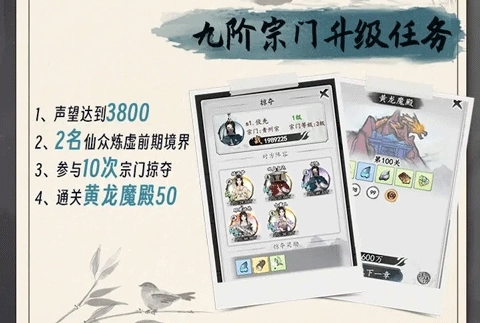 宗门模拟玩法中,玩家能够创建并管理专属宗门,招募门下弟子,培育修仙众人,同时建设与发展宗门的势力。